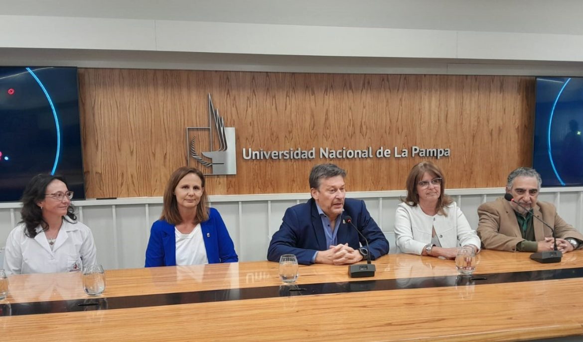 El anuncio lo hicieron el rector de la UNLPam, Oscar Daniel Alpa; la decana organizadora de la Facultad de Ciencias de la Salud, Yamila Magiorano; la médica Alejandra Maldini, secretaria académica de esa facultad; la ministra de Educación, Marcela Feuerschvenger; y el subsecretario de Salud, Gustavo Vera.