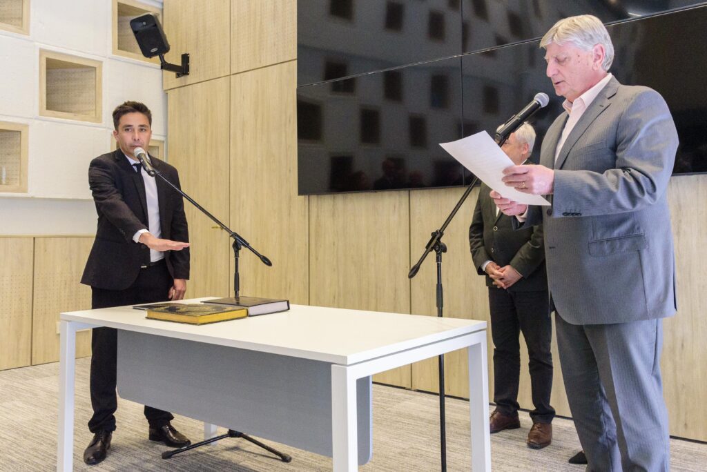 La ceremonia se llevó a cabo en el Salón de Acuerdos de Casa de Gobierno, donde estuvo presente la vicegobernadora Alicia Mayoral; el exministro, Julio Rojo; todo el gabinete provincial, legisladores provinciales; el presidente del STJ, José Sappa; la presidenta del Tribunal de Cuentas, Alejandra Mac Allister y el equipo de la cartera de Obras y Servicios Públicos, entre otras autoridades.