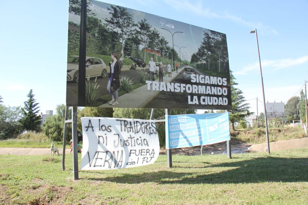 La ciudad de General Pico amaneció este lunes con una nueva y cruda manifestación de la feroz interna que atraviesa el Partido Justicialista pampeano. Tras las elecciones, marcadas por explosivas declaraciones del Exgobernador, el conflicto escaló y salió del ámbito de los dirigentes para plasmarse en pasacalles caseros anónimos colgados en la vía pública de la ciudad norteña con mensajes de extrema dureza contra el líder de la Plaural, Carlos Verna.