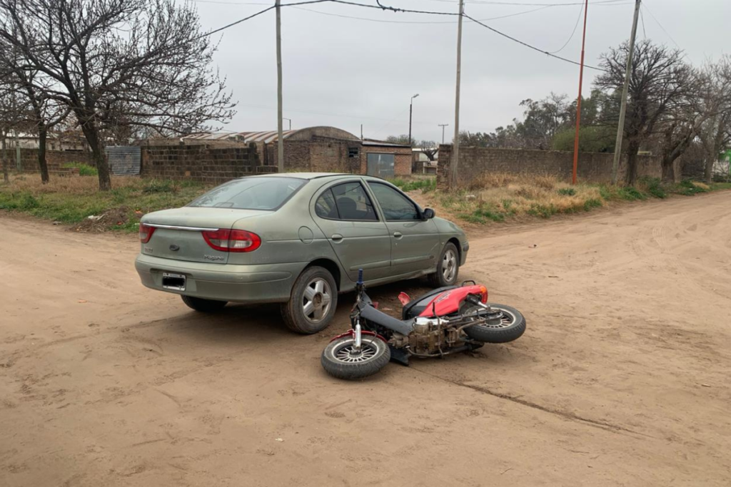 El accidente se registró en horas de la tarde de ayer, en calles de ésta localidad, donde colisionaron una motocicleta y un automóvil. Según precisaron fuentes policiales, el rodado menor era conducido por jóvenes menores de edad, en tanto que en el vehículo, un Renault Megane, circulaba un adulto que lo hacía en contramano.