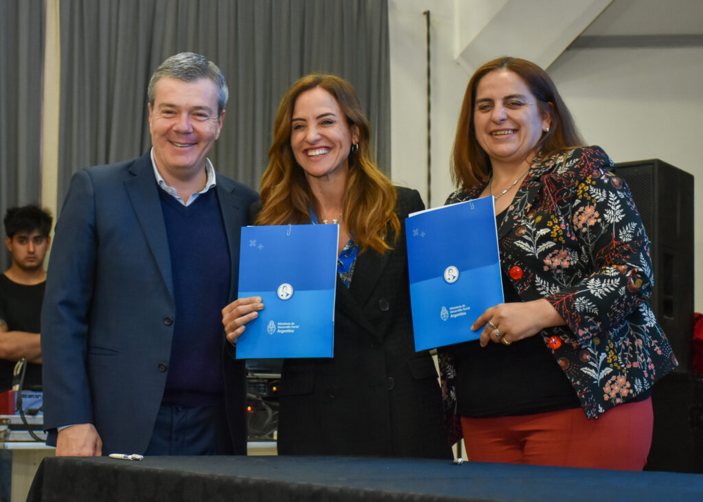 Previo a la inauguración, se firmaron convenios entre distintos municipios, el Gobierno provincial y el Ministerio de Desarrollo Social de la Nación.