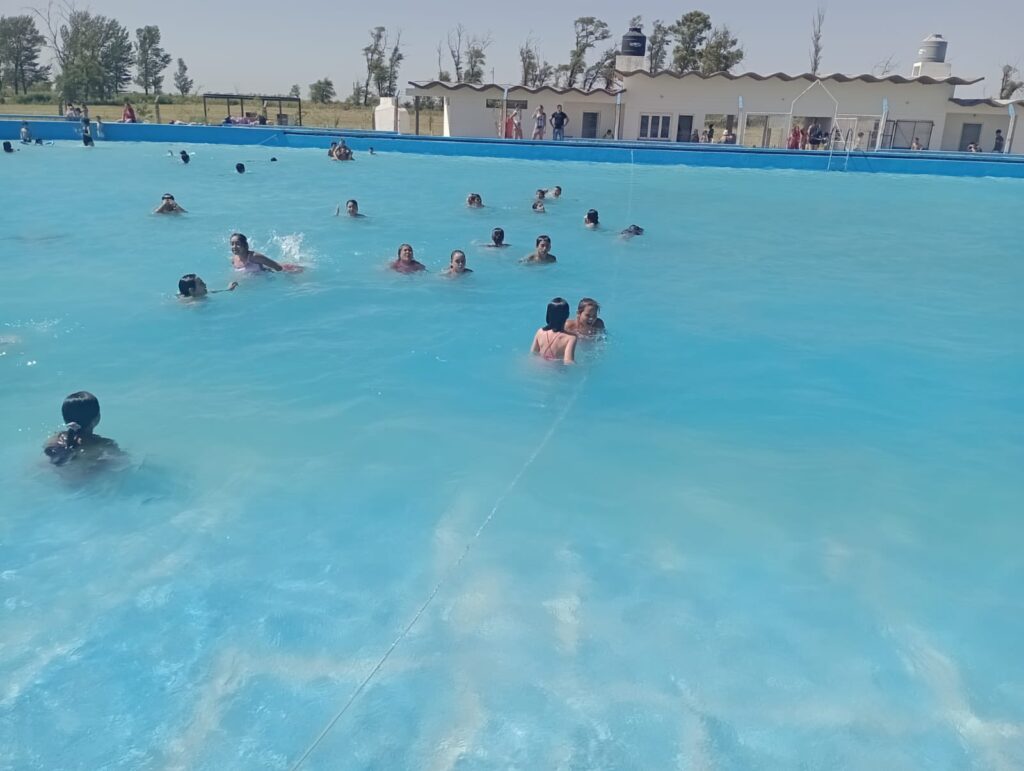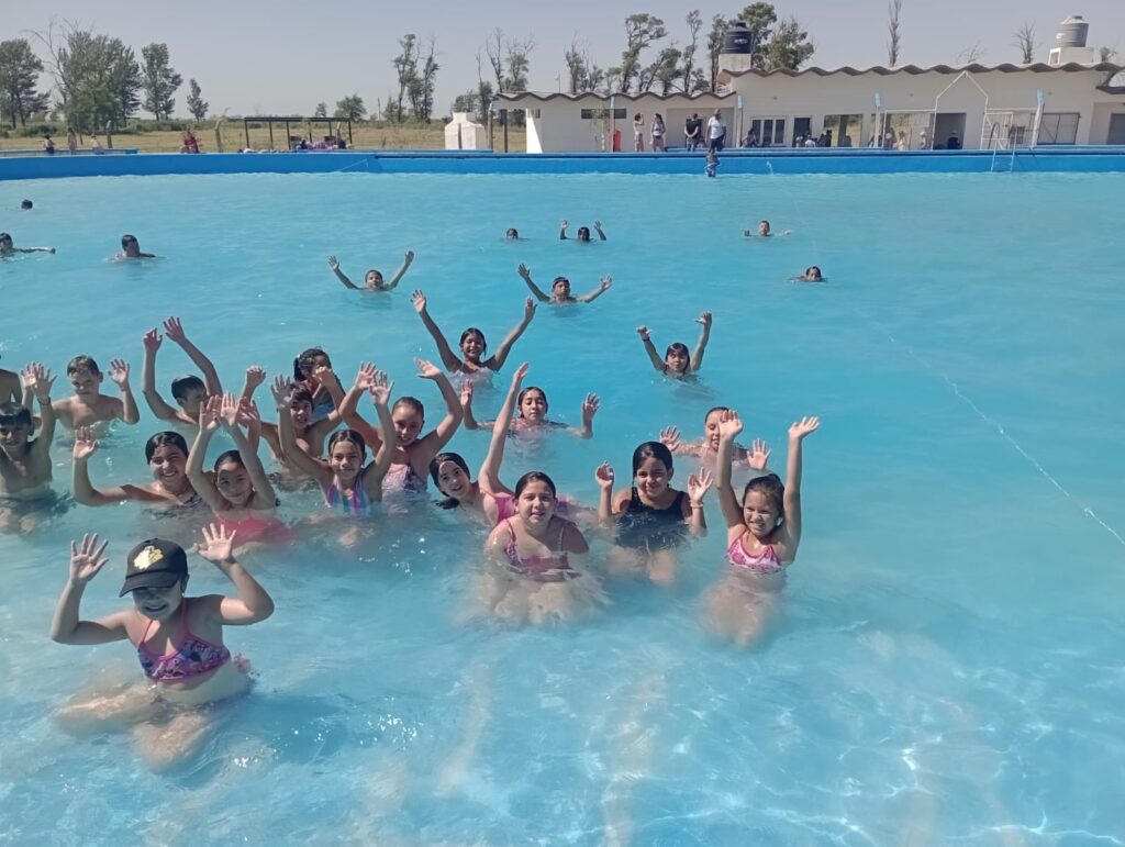 Niños y adultos mayores concurrieron al balneario municipal como cada año para disfrutar de las actividades al aire libre y sobre todo las acuáticas que se despliegan en la extensa pileta con la que cuenta el predio a la Vera de la Ruta Nacional 188.