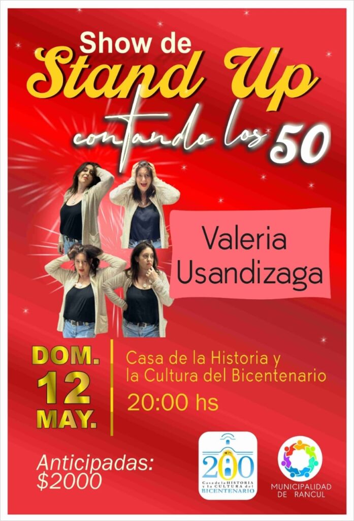 Este proximo fin de semana se presentará en Rancul la actriz Valeria Usandizaga con su espectáculo de Stand Up «Contando los 50». La propuesta es organizada por la Municipalidad de Rancul y se concretará este próximo domingo 12.
