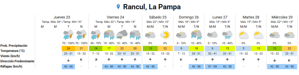 De acuerdo con el reporte del SMN, en zonas con alerta amarilla, “el área será afectada por tormentas, algunas localmente fuertes. Se espera que las mismas puedan estar acompañadas por abundante caída de agua en cortos períodos, frecuente actividad eléctrica, granizo y ráfagas intensas que podrían alcanzar los 90 km/h».