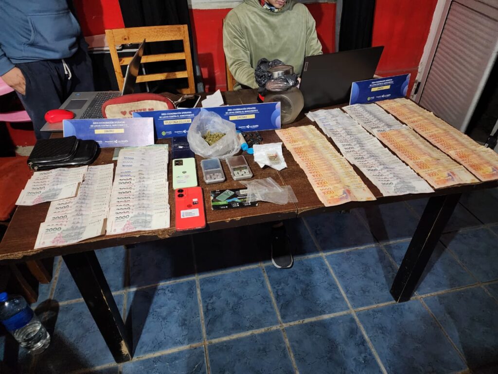 Durante la requisa de la vivienda se secuestraron ocho envoltorios de cocaína compacta, con un peso total de 5,6 gramos, una bolsa con 26 gramos de marihuana en floración, dos balanzas de precisión, tres teléfonos celulares, anotaciones y material de fraccionamiento. Además, se incautaron $ 628.000 en efectivo, 163 semillas de cannabis y dos motocicletas sin chapa patente.