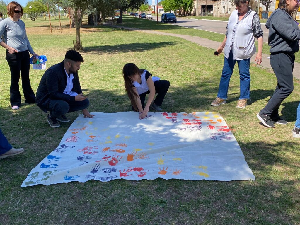 Finalmente las docentes contaron que la actividad finalizaría con el armado de este símbolo y precisaron que «esta bandera va a ser distinta porque, si bien respetamos los cuadrados que tiene, nosotros no pintamos todo sino que los chicos van a poner sus manos con los colores. Lo que pretendemos es que ellos vean que todos somos diferentes pero en el fondo somos iguales, vamos por el respeto, por la tolerancia, por poder estar juntos».