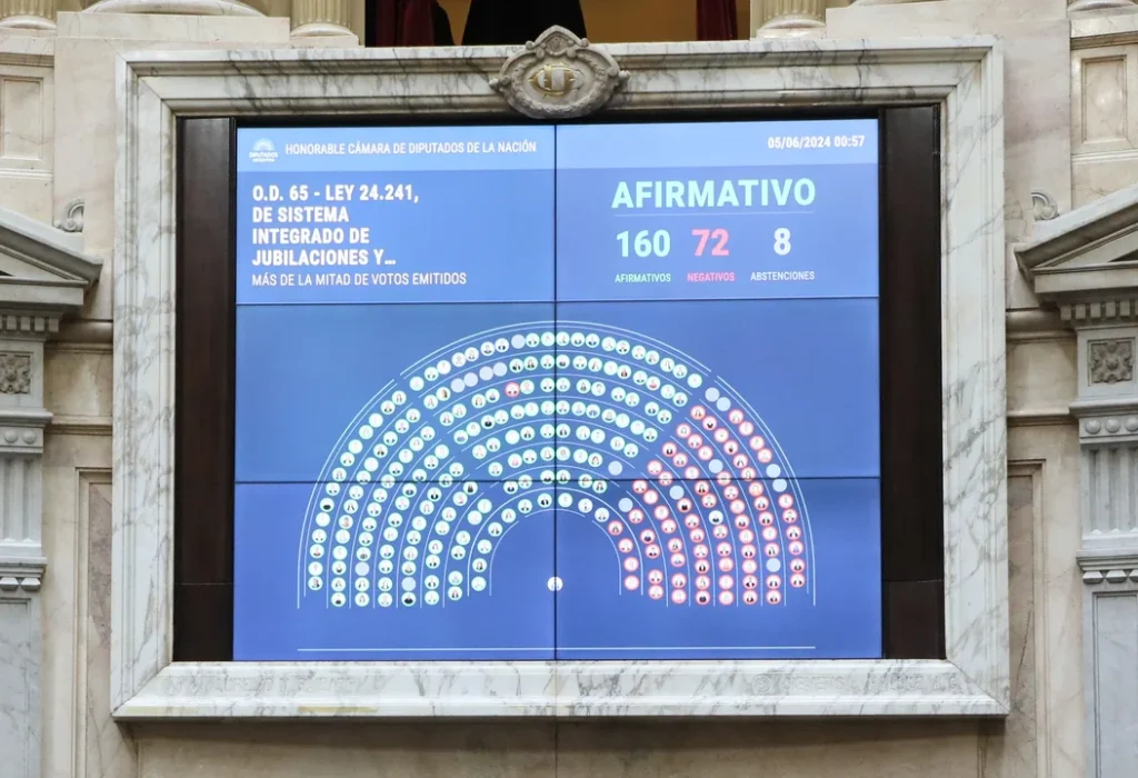 La iniciativa aprobada por 160 contra 72 votos y 8 abstenciones, lo que implica que alcanzaron los dos tercios que es la mayoría que se requiere para rechazar un veto presidencial si el Gobierno utiliza esa herramienta como anunció el presidente Javier Milei.