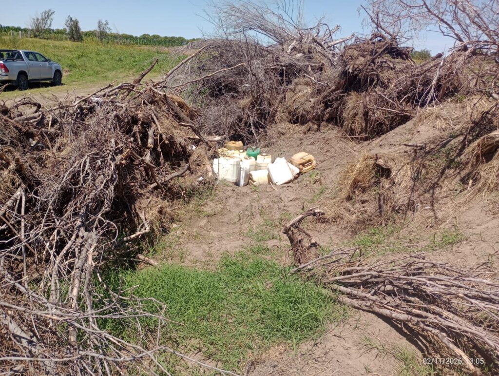 «Continuando con la labor policial a partir de la información aportada, en la tarde de ayer se diligenció una orden de allanamiento librada por el Juez de Control Dr. Alejandro Gilardenghi, en un domicilio de la planta urbana de esta localidad, donde se procedió registra la vivienda y un camión que se encontraba en el lugar, arrojando resultados positivos, procediéndose al secuestro de cinco bidones vacíos, de similares características a los hallados ocultos anteriormente», mencionó el Comisario.