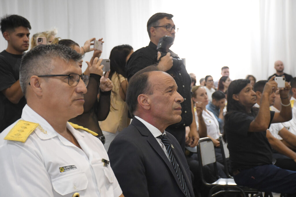 El ministro de Seguridad y Justicia, Horacio di Nápoli, se dirigió a las y los egresados con un mensaje centrado en los valores, la responsabilidad y el compromiso humano que implica la profesión policial.