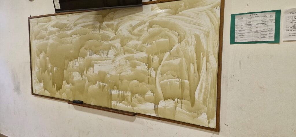 Finalmente el directivo del Instituto Agrotécnico agradeció al personal de maestranza y limpieza porque gracias al esfuerzo y su trabajo durante el fin de semana pudieron recuperarse las pizarras para ser utilizadas en el día de hoy.