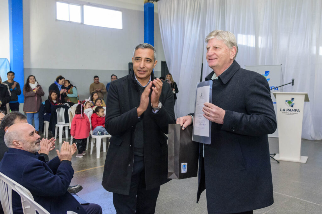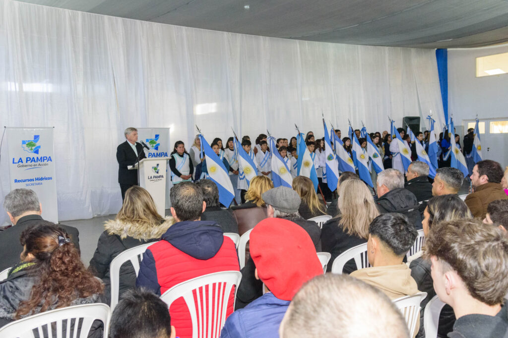El acto que se realizó esta mañana en el Polideportivo local estuvo cargado de emoción. Alumnos de todos los niveles, docentes y vecinos le dieron marco al encuentro donde el anfitrión, el intendente Oscar Gatica, recibió al primer mandatario pampeano; jefes comunales de la región; el titular de la cartera de Recursos Hídricos José Gobbi y demás funcionarios provinciales y municipales.