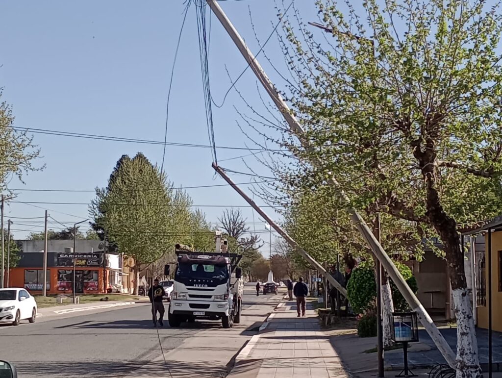 Según se pudo saber, las palmeras pertenecerían al tendido de cables de Telefónica. Si bien las rafagas de viento hicieron lo suyo, el deterioro que presentarían las bases de las mismas hace que esto represente un peligro en días de viento.
