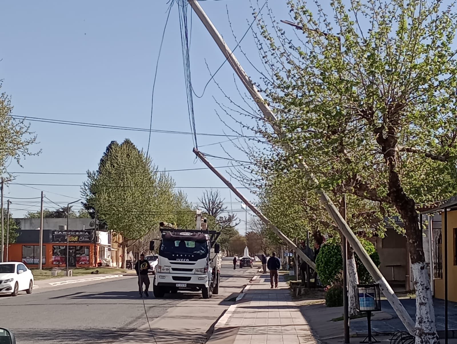 En la zona, las mismas quedaron sujetadas por el cableado pero se registro otra caida en calle Avellaneda y San Martin, y en este caso corto el paso dado que cayó sobre la arteria.