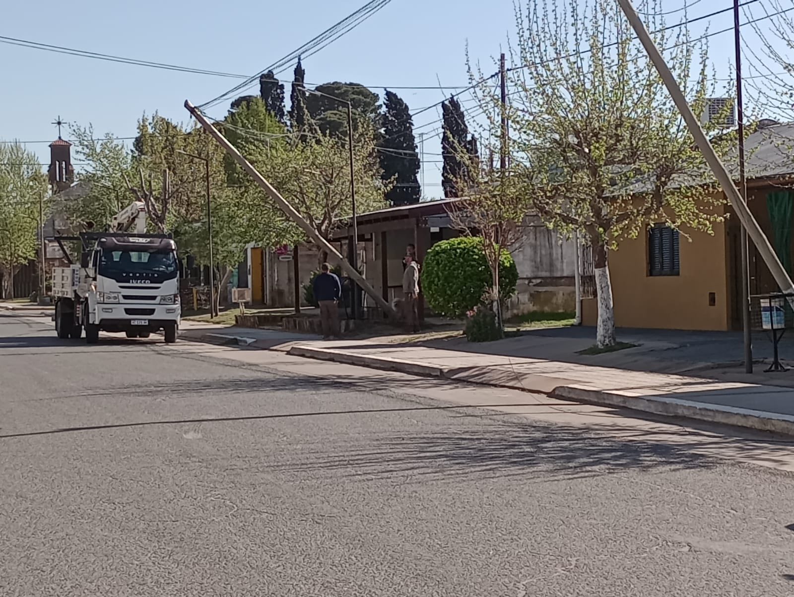 Según se pudo saber, las palmeras pertenecerían al tendido de cables de Telefónica. Si bien las rafagas de viento hicieron lo suyo, el deterioro que presentarían las bases de las mismas hace que esto represente un peligro en días de viento.