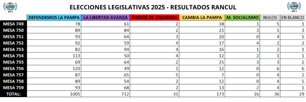En Rancul se impuso el frente defendamos la pampa, en segundo lugar quedó la libertad avanza y tercero, cambia la pampa.