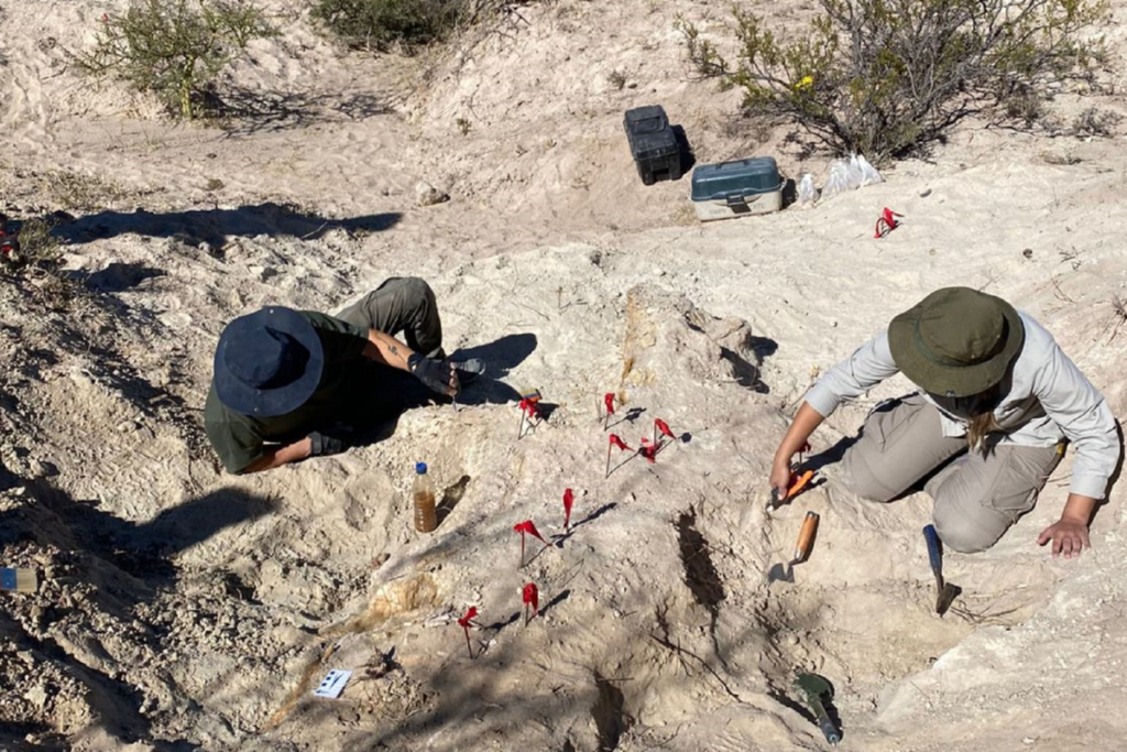El hallazgo se produjo en un lugar conocido como Colonia Chica. “Somos un equipo de siete personas que estamos trabajando acá, en el marco de la Ley Provincial de Protección del Patrimonio Arqueológico y Paleontológico de La Pampa”, contó a la Agencia Provincial de Noticias, desde el lugar del hallazgo, el director del Museo Provincial de Historia Natural, Daniel Pincén.