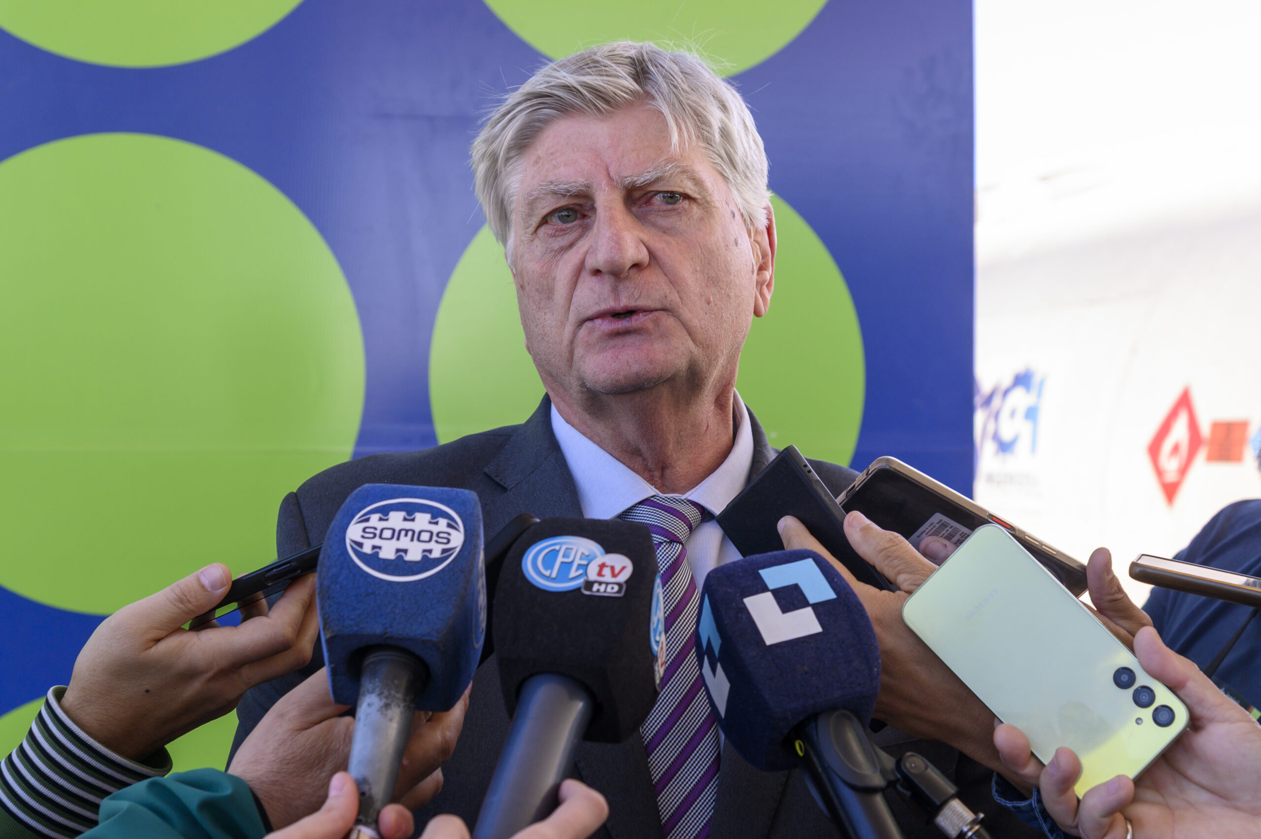 El gobernador Sergio Ziliotto encabezó una conferencia de prensa tras la inauguración de la Estación de Servicio municipal, donde anunció una millonaria inversión en obras de agua potable, se refirió a la deuda de Nación con la Provincia, a la situación laboral y a las próximas elecciones legislativas.
