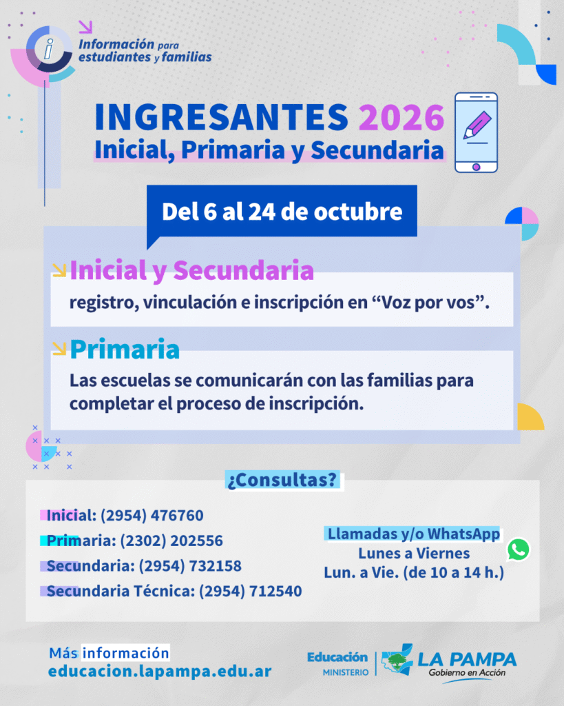 Para obtener más información, pueden visitar el sitio web https://educacion.lapampa.edu.ar/estudiantes-y-familias/inscripciones-ingresantes
