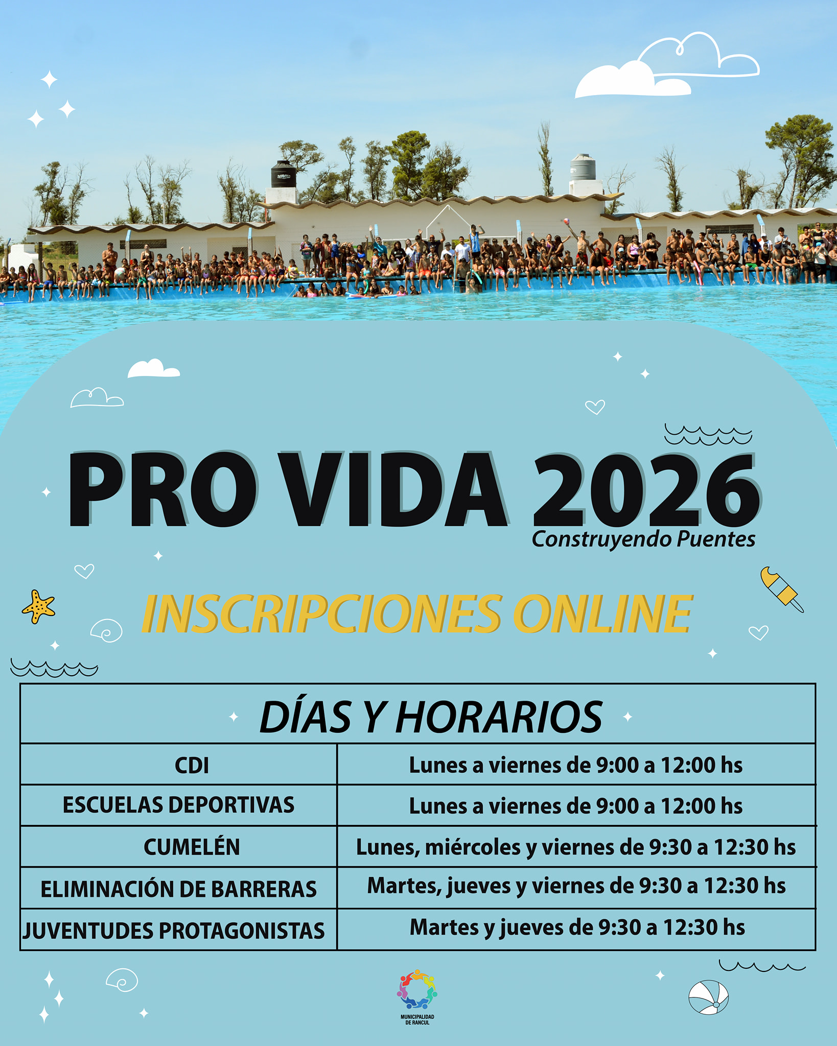 En las ultimas horas el municipio lanzó la inscripción para el PROVIDA de Verano 2026 que, según se anunció, iniciará el próximo 5 de enero. Las familias que deseen enviar a sus niños, deberan registrarlos en el siguiente link: https://forms.gle/VhwVxJqpsJekkAQ98.