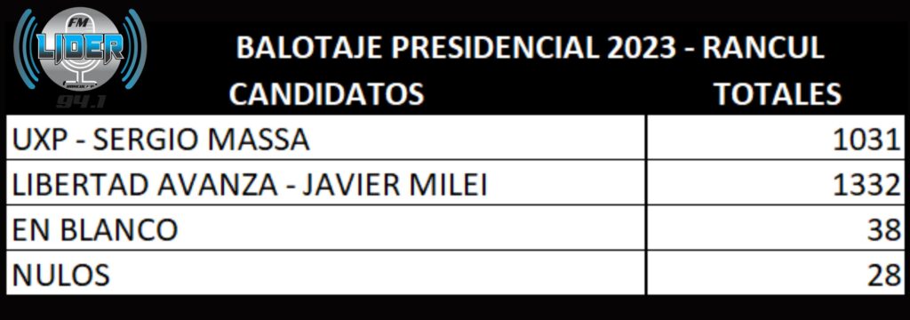 El candidato libertario se impuso en la localidad de Rancul, donde sumó un total de 1332 votos, en tanto que Sergio Massa obtuvo 1031.