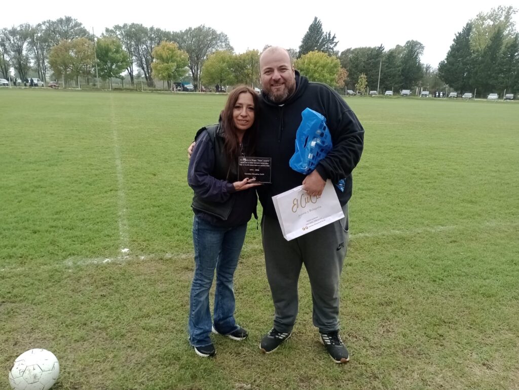 En este caso el Presidente de la Institución, «Tato» Arzani, entregó a su hermana, Graciela, una placa recordatoria en memoria de quién custodió los vestuarios de la sede deportiva de Newbery durante muchísimos años.
