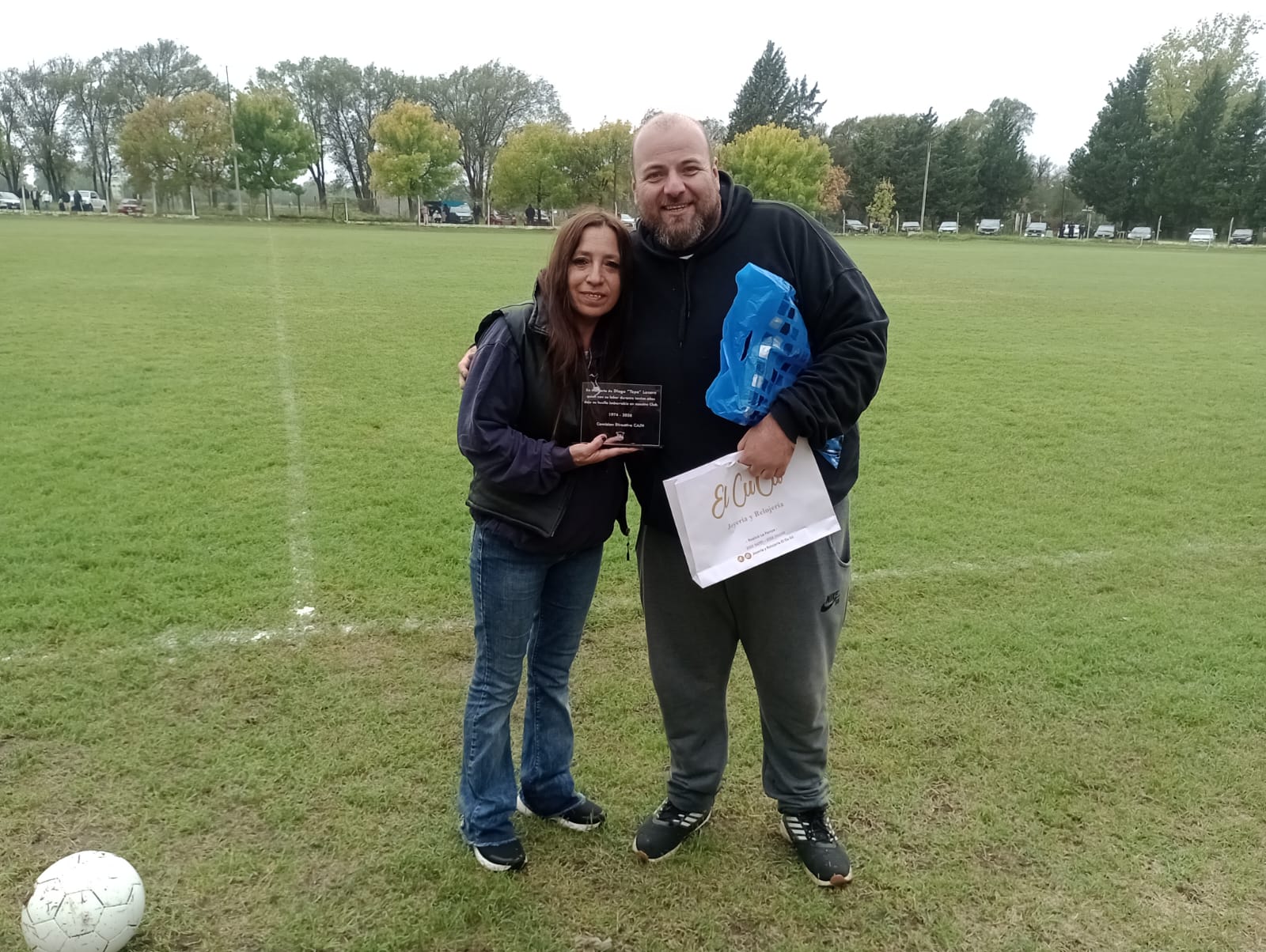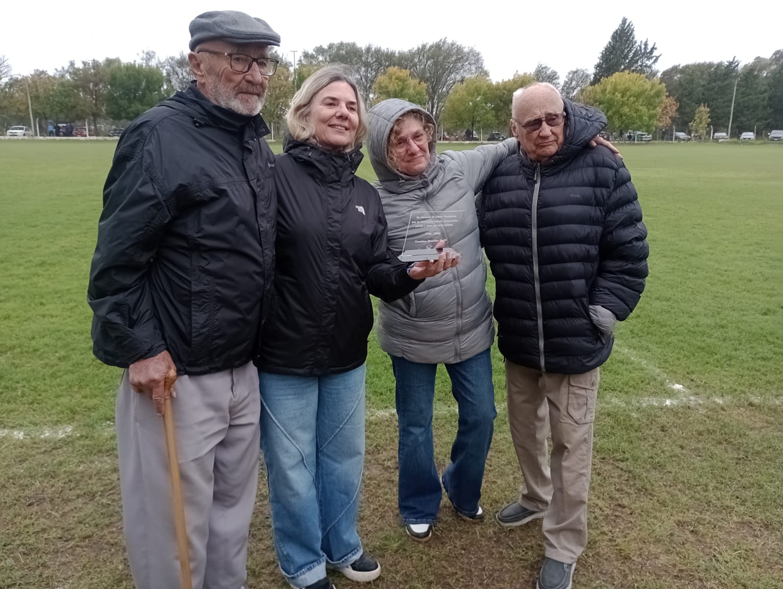La familia Trombetta recibió una placa por parte del Club que fue entregada de manos de Rogelio Gonzáles y «Fatiga» Martino quienes, junto a Omar, se distinguen en la historia del Club por ser socios fundadores del Aviador.