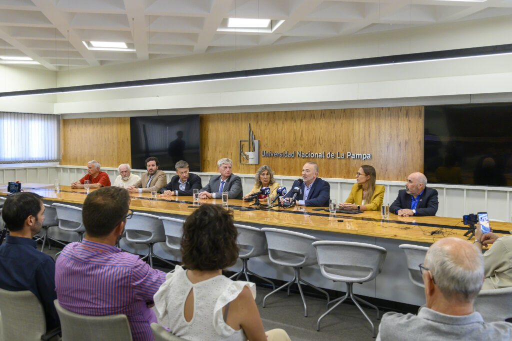 El gobernador realizó el anuncio acompañado por la vicegobernadora, Alicia Mayoral; el rector de la UNLPam, Oscar Alpa; representantes de la Fundación Chadileuvú y de la Asamblea por los Ríos Pampeanos; la fiscal de Estado, Romina Schmidt; el secretario de Recursos Hídricos, José Gobbi; la secretaria de Ambiente y Cambio Climático, Vanina Basso; y el abogado Andrés Gil Domínguez, entre otras autoridades.