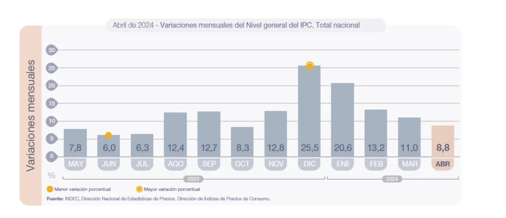 El índice de inflación finalmente descendió a un dígito, ya que arrojó 8,8% en abril último, informó el INDEC.