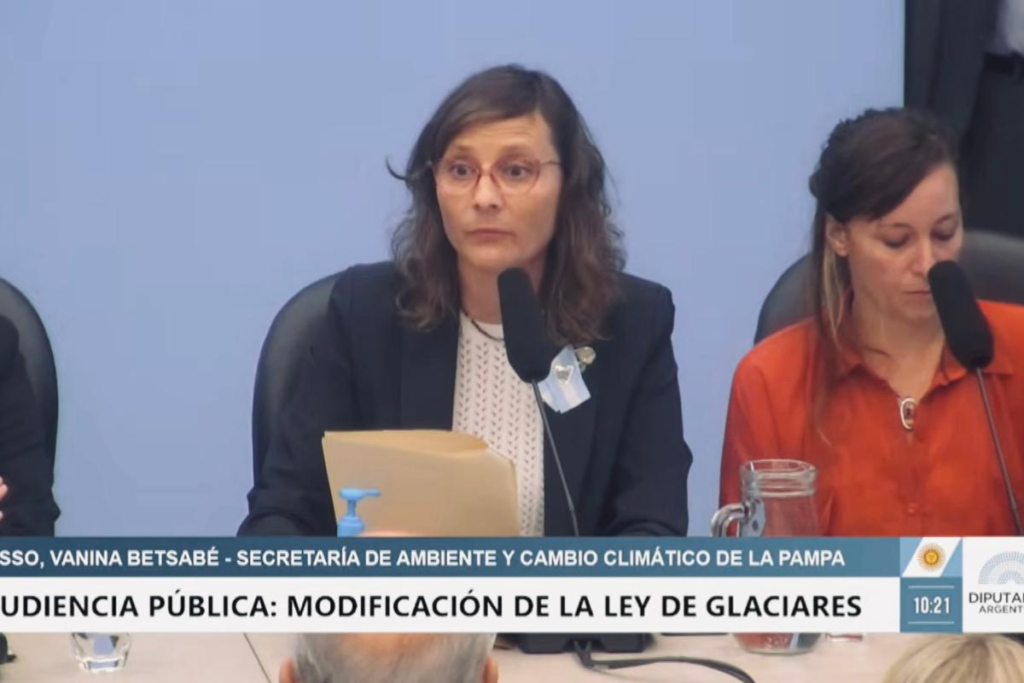 La secretaria de Ambiente y Cambio Climático de La Pampa, Vanina Basso expuso este miércoles en la Cámara de Diputados de la Nación durante la audiencia pública convocada para analizar el proyecto de modificación de la Ley de Glaciares. En representación del Gobierno provincial, sostuvo el rechazo a la iniciativa y advirtió que flexibilizar la protección de los ambientes glaciares y periglaciales pone en riesgo la seguridad hídrica de los territorios ubicados aguas abajo.