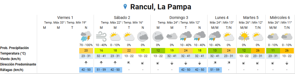 El anuncio de lluvias se reitera para el día domingo y además, durante el fin de semana, habrá un descenso de las temperaturas. Mirá cómo estará el clima en los próximos días en Rancul:
