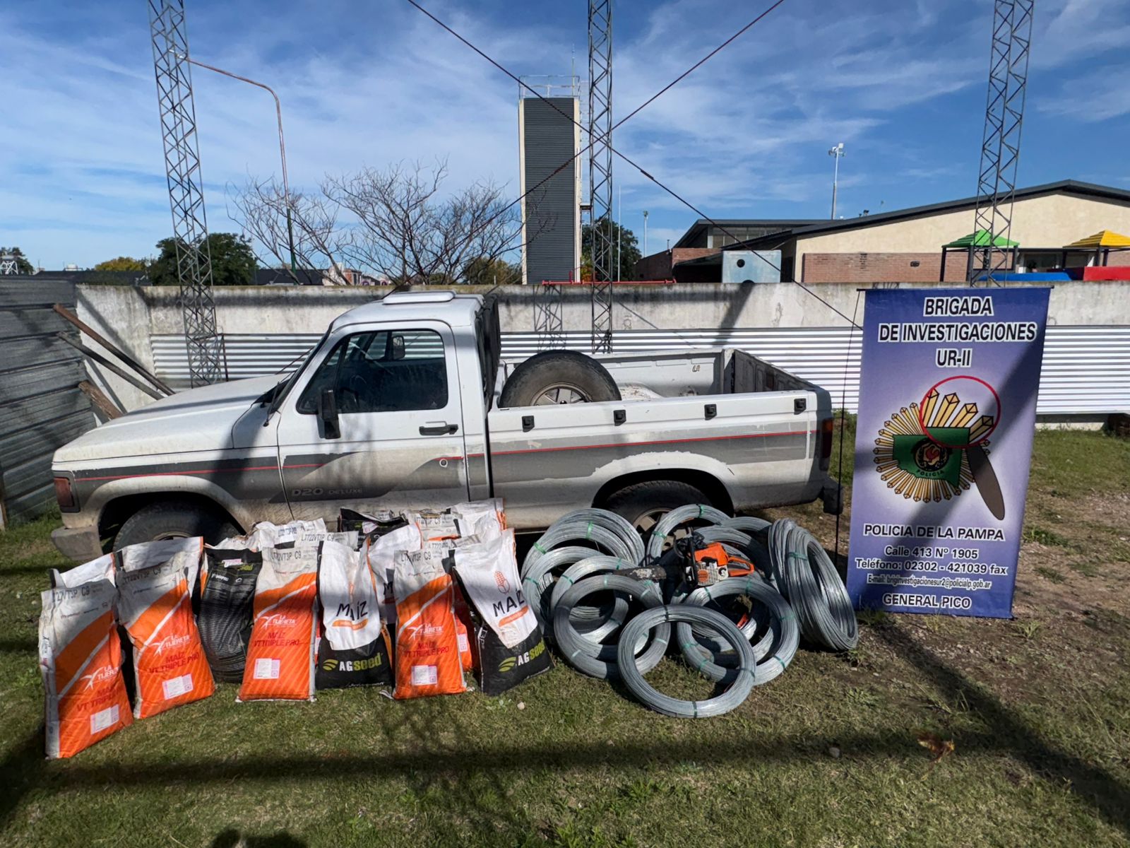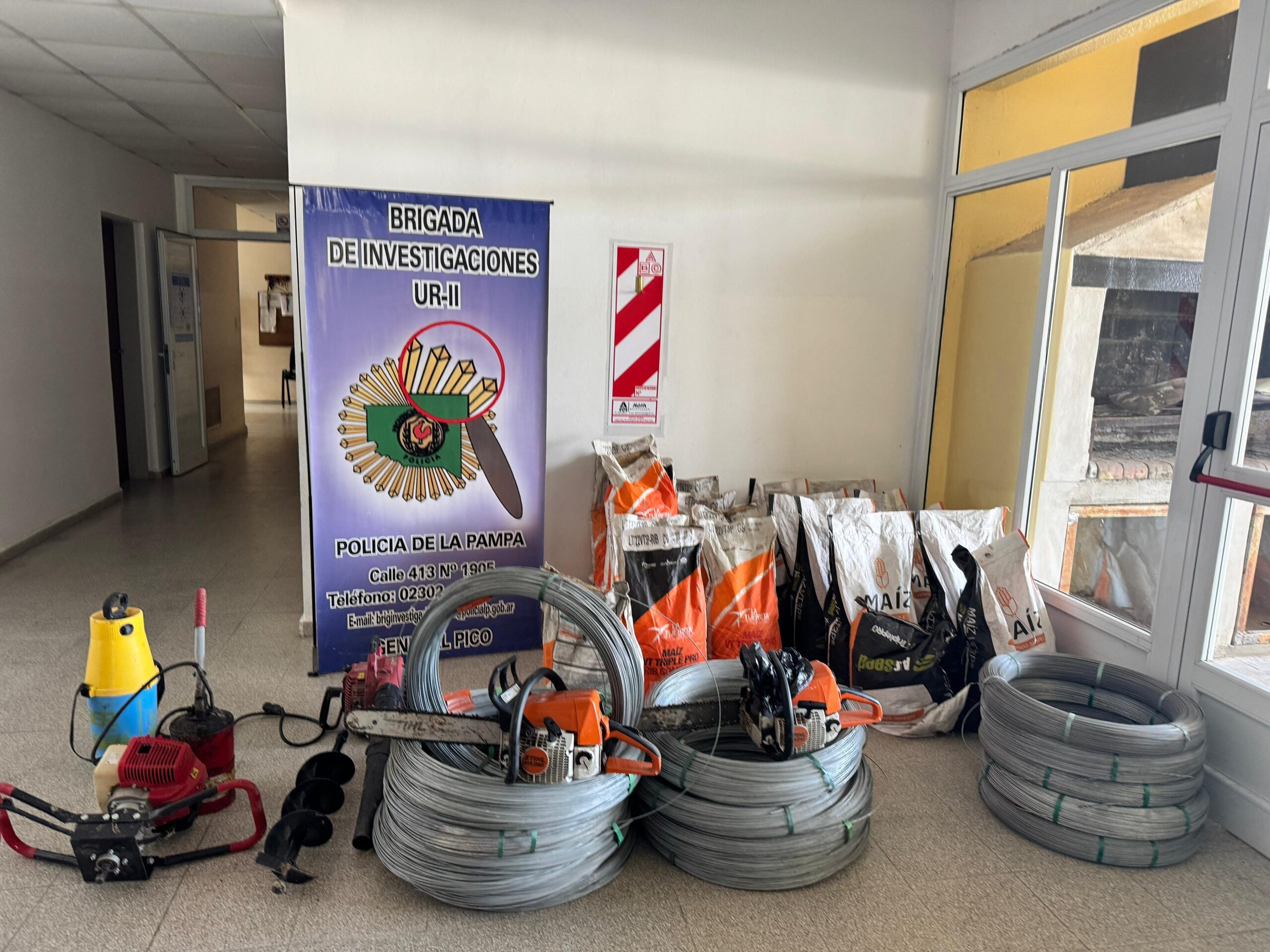 El pasado domingo el personal de la Departamental de Rancul tomó conocimiento de que personas desconocidas habían entrado sin ejercer violencia al predio rural «San Gerónimo», un establecimiento rural ubicado a 15 km de la localidad de Rancul, lindante con la provincia de Córdoba, propiedad de un vecino de ésta localidad quién denunció el faltante de 22 bolsas de maíz, 14 rollos de alambre acerado, dos motosierras Sthill, una sopladora a expansión, una grasera, una máquina abolladora y una máquina fumigadora.