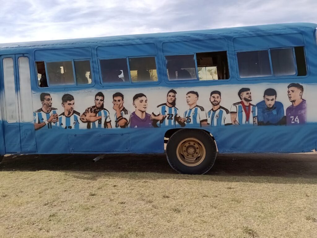 El Vehículo se vistió de celeste y blanco y este 2023 es «La Scaloneta», una obra realizada por «Paco» Baras, trabajador del corralón municipal que año a año pone especial dedicación al acondicionamiento del colectivo del municipio que con su particular bocinazo anuncia el inicio y el fin de la jornada de la Colonia de Vacaciones.