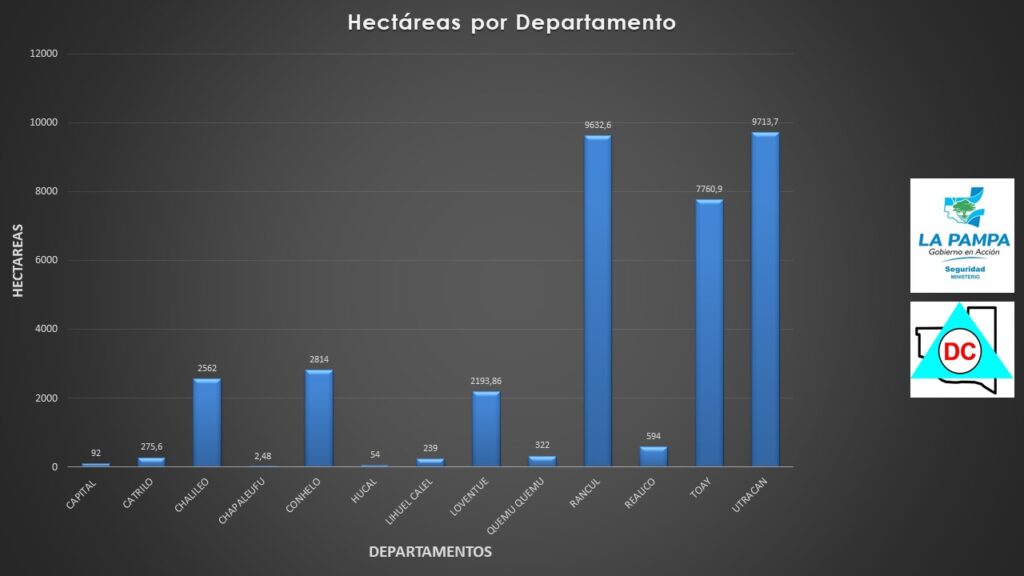 Las zonas más afectadas durante la época invernal fueron el Departamento Utracán donde se quemaron 9713,7 hectáreas, seguido por Rancul con 9632,6 y Toay con 7760,9. En tanto en Conhelo se vieron afectadas 2814, Chalileo 2562, Loventué 2193,86, Realicó 594, Quemú Quemú 322, Catriló 275,6, Lihuel Calel 239, Capital 92, Hucal 54 y Chapaleufú 2,48 que completan las 36256,14 hectáreas totales afectadas por los fuegos.