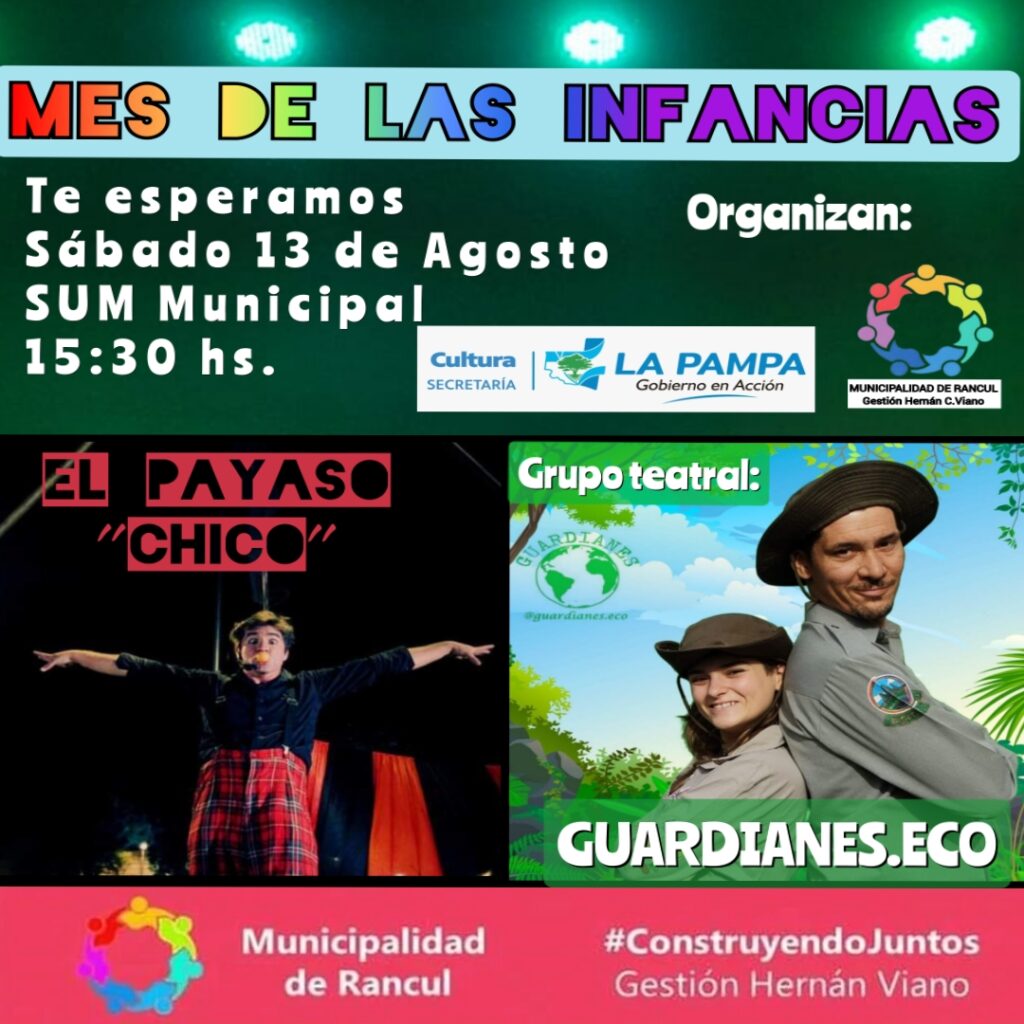 En el marco de los festejos por el Mes de las Infancias, continúan las actividades previstas por la Municipalidad de Rancul y éste sábado se podrá disfrutar de dos propuestas.