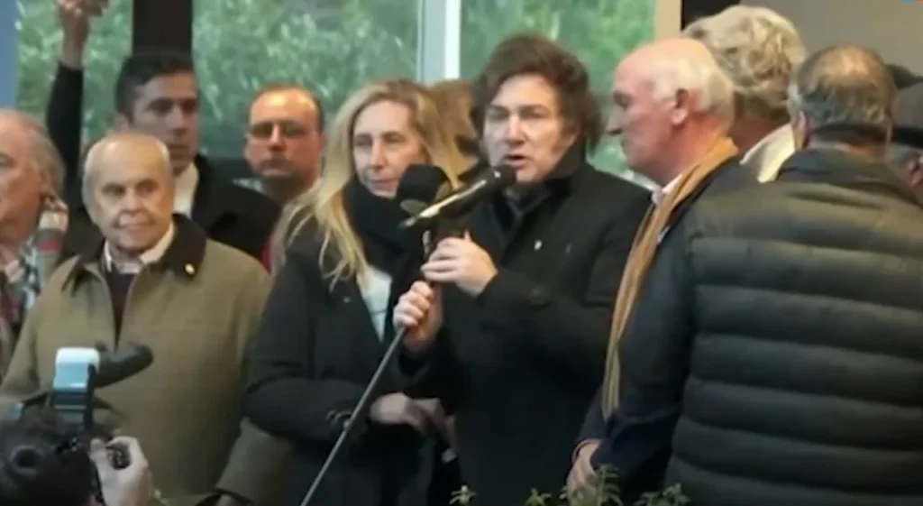 «Vamos a eliminar el Impuesto País y luego las retenciones para que el campo sea libre», enfatizó el jefe de Estado, que estuvo acompañado por su hermana y secretaria general de la Presidencia, Karina Milei.