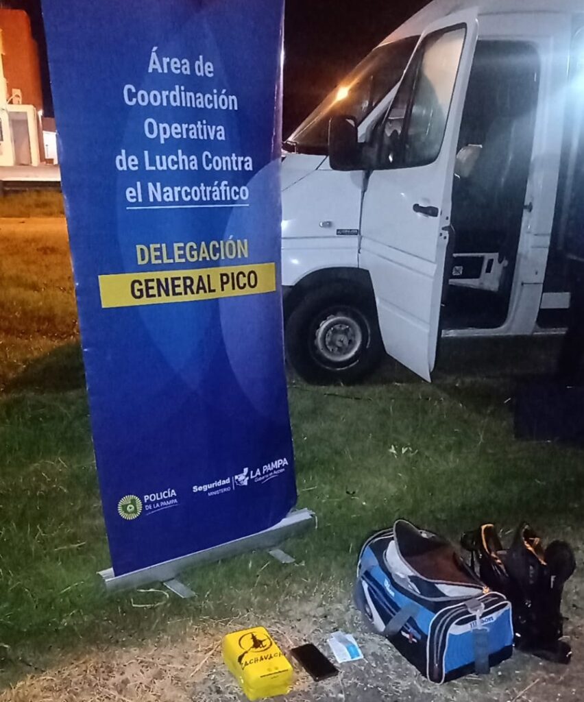 El accionar comenzó durante la madrugada de este martes cuando los efectivos de la mencionada División de General Pico, realizó un operativo vehicular en el Puesto Caminero Realicó sobre Ruta Nacional N° 35, orientado a la prevención de lucha contra el Narcotráfico, en la que se procedió al control de un ómnibus de larga distancia, proveniente de Córdoba capital con destino a General Pico.