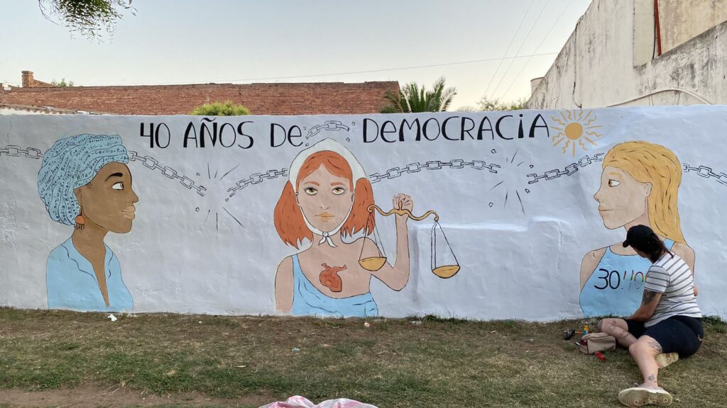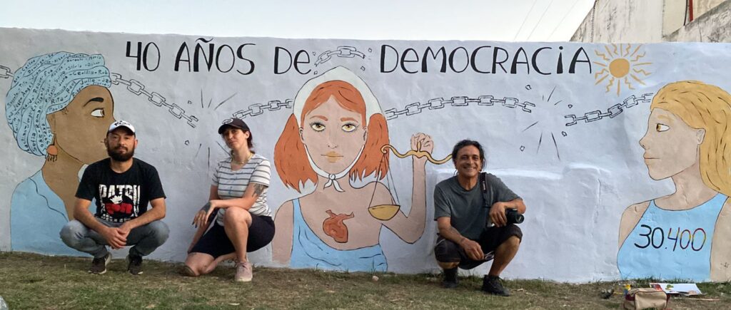 Los integrantes del «Club de Mentes» dejaron plasmado un nuevo mural en la localidad con un significado muy importante para los argentinos, sobre el cuál «Reina Momo» detalló ante F.M Líder que la pintura buscaba plasmar los 40 años de democracia, y detalló que «quisimos representar la Memoria, la Verdad y la Justicia, cada una con una mujer diferente. La de Memoria tiene un turbante con todos nombres de desaparecides en dictadura y rasgos originarios, con Justicia la balanza y el pecho al descubierto para simbolizar que la justicia debe ser empática, honesta y fiel al pueblo, y también tenemos la Verdad, con una remera que dice 30.400, los 400 representan a la comunidad lgbtiq+ que también fueron desaparecides en dictadura y no se habla mucho tampoco de esta comunidad, y tenemos las cadenas rotas representando el fin de la dictadura».