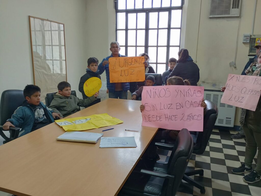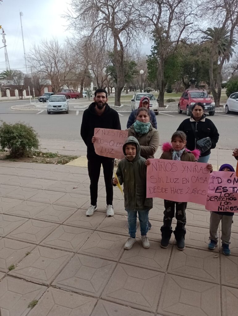 La aplaudida frente al municipio fue protagonizada por las tres familias que viven en el loteo y que desde hace dos años reclaman la llegada de la energía eléctrica al predio. Actualmente se abastecen con generadores alimentados por combustible y con velas.