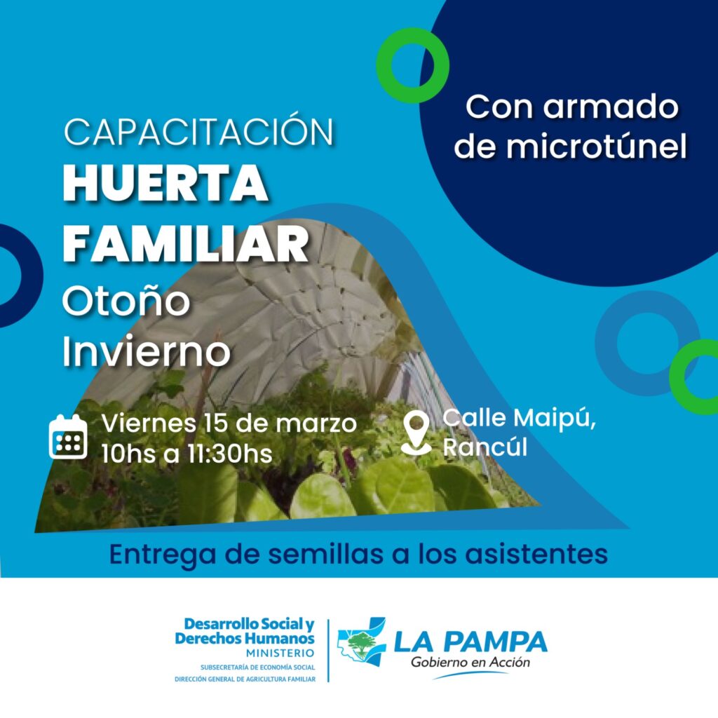 Desde la Delegación del Ministerio de Desarrollo Social con sede en Rancul, se invita a los vecinos a participar de una capacitación en Huerta Familiar que se desarrollará este proximo viernes 15, a las 10:00 Hs.