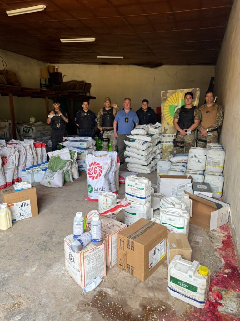 Posteriormente, y en cumplimiento del exhorto emitido por el Juzgado de Garantías N° 2, se allanó una vivienda donde se halló la totalidad de los elementos sustraídos, entre ellos una gran cantidad de agroquímicos y bolsas de semillas.