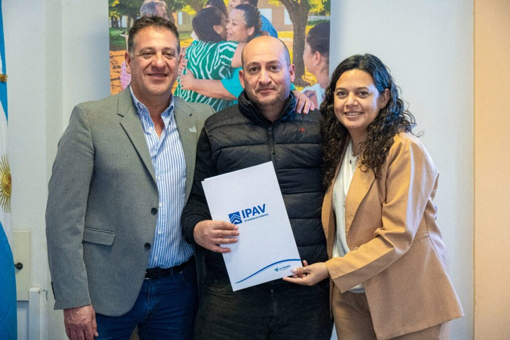 El Presidente de la Comisión de Fomento de Quetrequén, Juan Pablo Resio, se reunió en la mañana de hoy con el Ministro de Asuntos Municipales, Pascual Fernandez, y con la Gerenta de Planificación y Adjudicaciones del IPAV, Erica Rivoira, para firmar un nuevo convenio de viviendas para la Comuna.