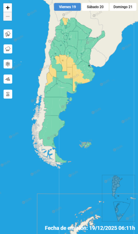 En el caso del norte provincial, el alerta es de nivel amarillo y se concretaría en horas de la noche de este viernes, extendiéndose hasta la madrugada del sabado.