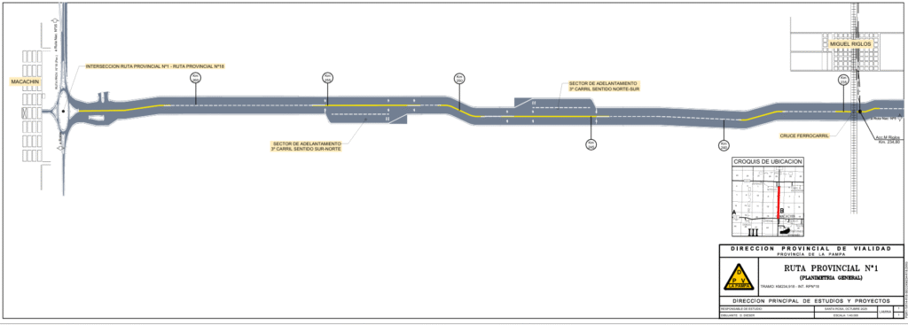 La obra, con una inversión provincial de $28.142 millones, convertirá el tramo de la Ruta Provincial 1, entre Miguel Riglos y Macachín, en la primera “ruta segura” de La Pampa, al incorporar carriles de sobrepaso y un sistema de pesaje dinámico de última tecnología, ambos inéditos en la red vial provincial. Este tramo integra una obra mayor que prevé la intervención de 70 kilómetros de la Ruta 1, entre Macachín y su intersección con la Ruta Nacional N° 5.
