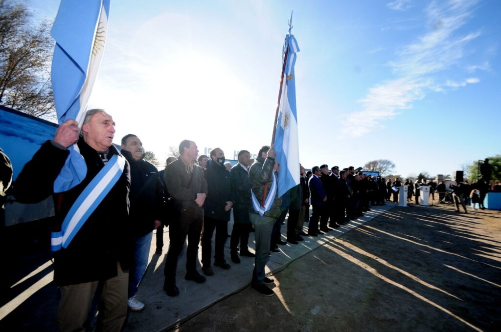 Tras el ingreso de las banderas de ceremonia de las instituciones locales se procedió con la entonación del Himno Nacional Argentino, a cargo de la Banda del Regimiento de Infantería Mecanizado 6 “Capitán Tocagni”.