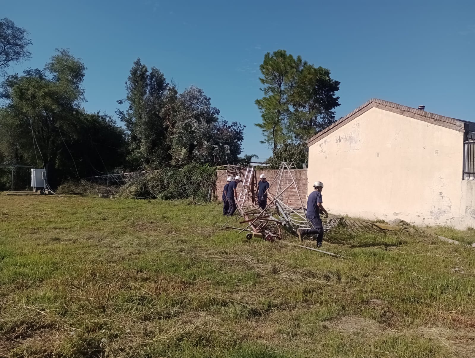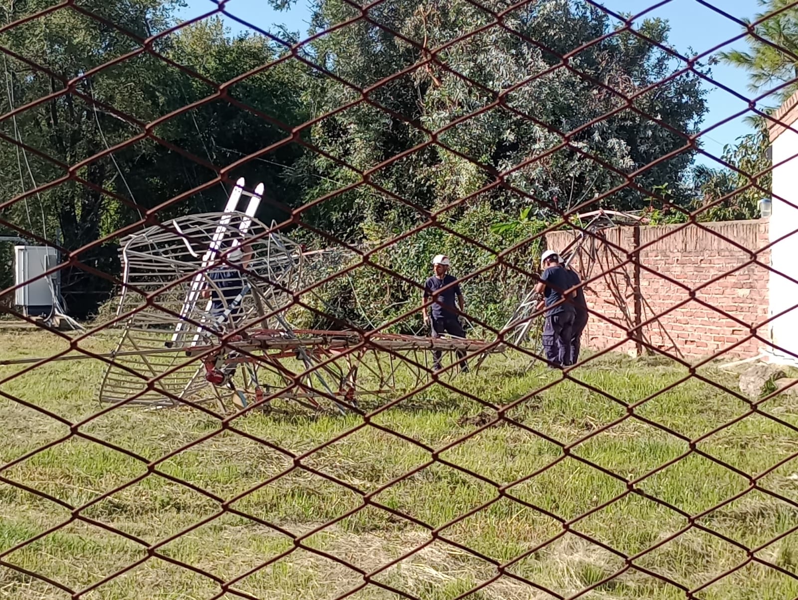 Afortunadamente la parte que terminó en el piso quedó dentro del predio y solo dañó parte del tapial de una de las viviendas aledañas, pero podría haber sido una tragedia o haber afectado aún más a los domicilios próximos.