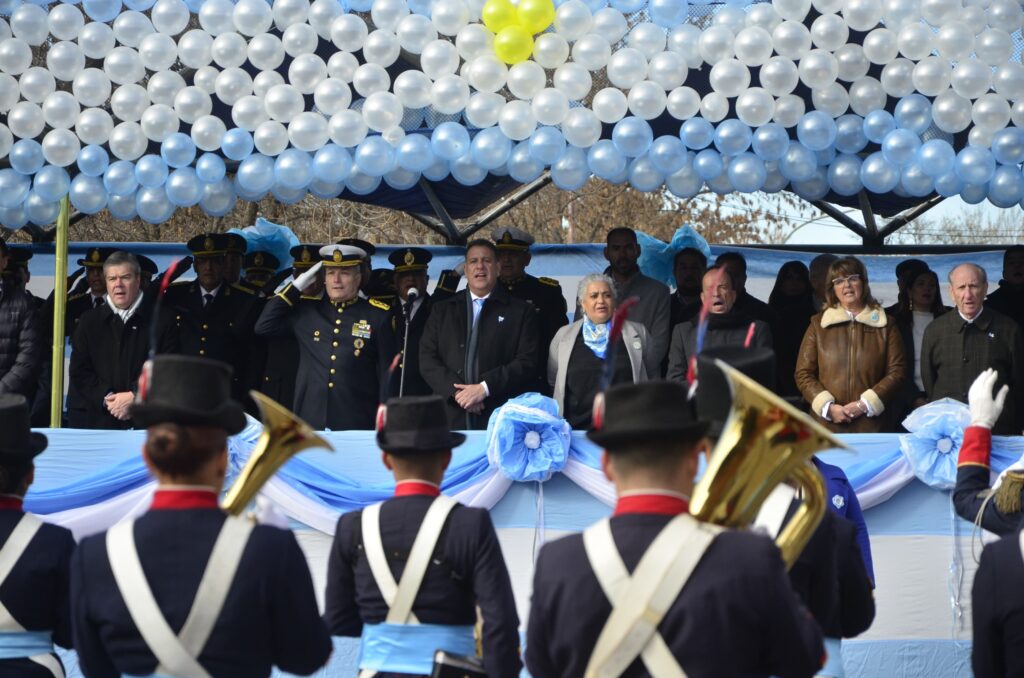 Con la presencia de autoridades provinciales, municipales y del Ejército Argentino, entre otras, se desarrolló esta mañana el desfile cívico militar por las calles de la localidad que fue acompañado por numerosos vecinos y vecinas a pesar del día frío. Luego se realizó una peña folclórica y una feria de artesanos, con puestos de comidas.