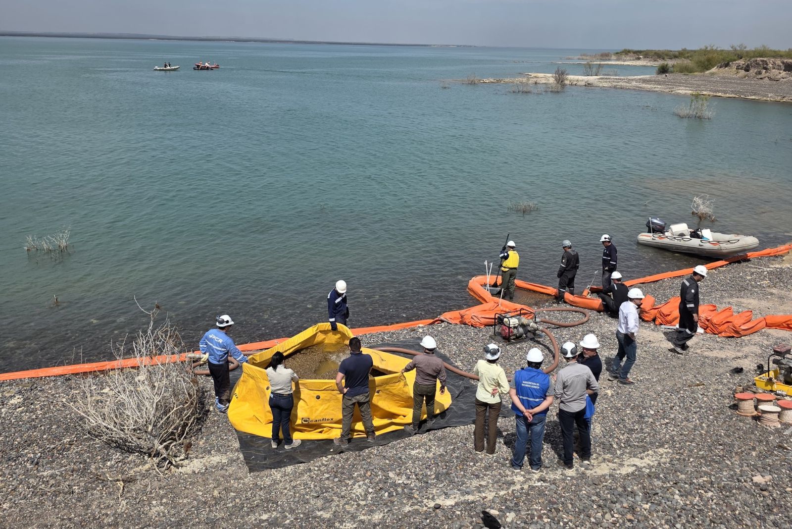 El Gobierno de La Pampa, a través de las Secretarías de Energía y Minería, Ambiente y Cambio Climático, y Recursos Hídricos, junto a las empresas que operan las áreas de la Provincia, llevaron adelante un nuevo ensayo de recupero protección de costas de un derrame de petróleo en el Lago Casa de Piedra, en el marco del Protocolo Integral de Monitoreo Preventivo y de Contingencias de los Yacimientos Hidrocarburíferos de La Pampa.