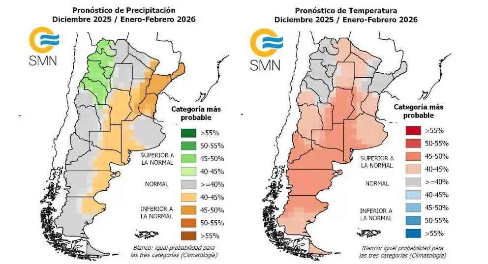 Córdoba, Santa Fe, San Luis, La Pampa, Buenos Aires, Neuquén, Río Negro, Chubut y Santa Cruz experimentarán ese incremento de probabilidad de aumento de temperatura por encima de los valores normales de verano.