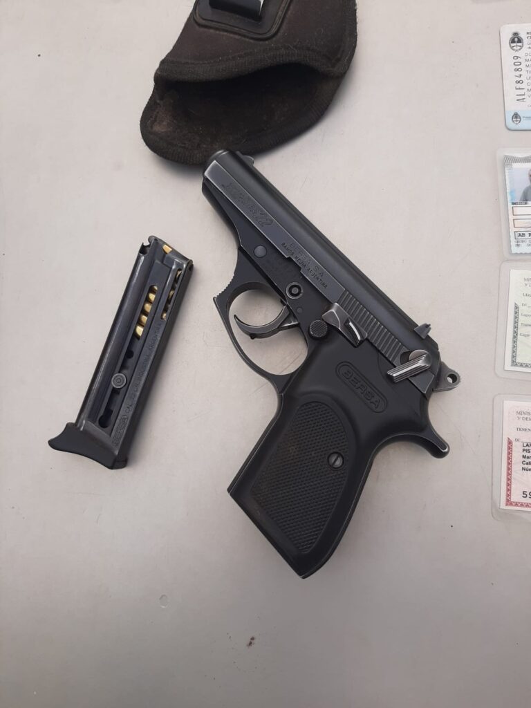 El procedimiento inició en el marco de un operativo de rutina donde se identificó a los ocupantes de un vehículo, al constatar que el arma contaba con cargador colocado y munición en recamara para su uso inmediato, el personal procedió al secuestro de la misma con 9 proyectiles.