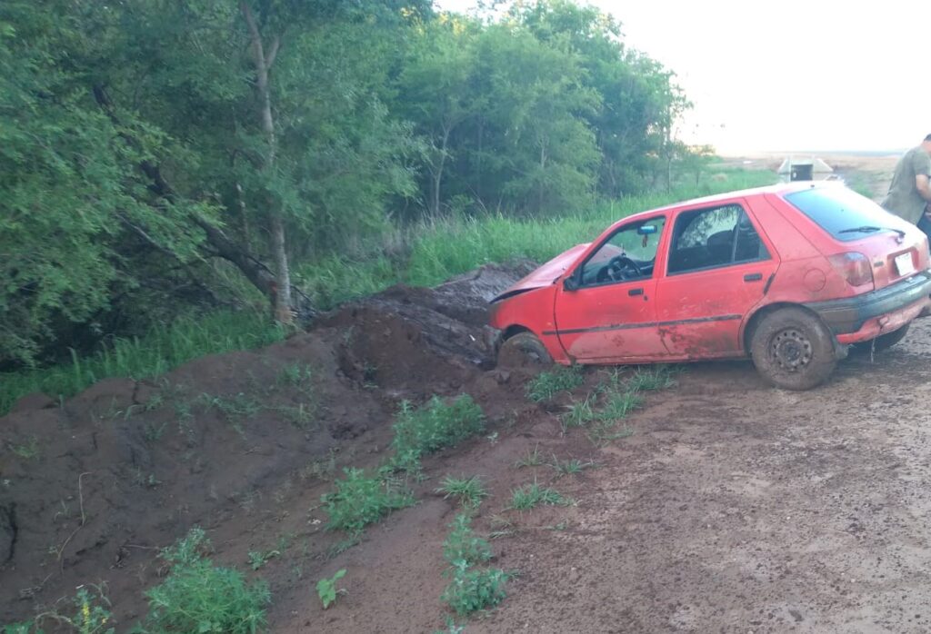 El conductor no habría advertido que se terminaba la ruta de asfalto y justo en el deslinde despistó. El automóvil que conducía quedó sobre la cuneta del camino vecinal.